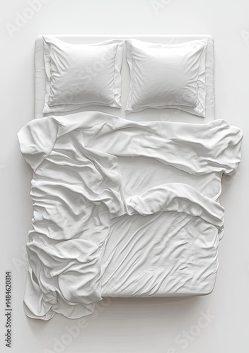 bed, linen, sheet, pillow, duvet, comforter, blanket, white, clean, crisp, sleep, rest, bedchamber, interior, design, home, modern, minimalist, cosy, comfortable, relax, quality, luxury, fashion, textile, fabric, mattress, top, view, photorealistic, three-dimensional, rendering, decor, simple, elegant, pure, hotel, bedding, cleanliness, comfort, style, restful, peaceful, pillow, linen, textile, fresh