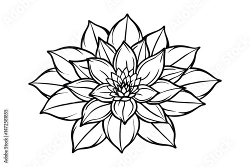 flower, lotus, dahlia, water lily, line art, outline, vector, illustration, black-and-white, botanical, floral, vignetting, hand-drawn, icon, logotype, tattoo, spa, yoga, meditation, spiritual, zen, purity, harmony, beauty, symbol, graphic, design, element, print, wedding, invitation, monochrome, clean, simple, isolated, blossom, bloom, nature, plant, flower petals, contour, drawing, art, elegant, sacred, relaxation, wellness, beautiful