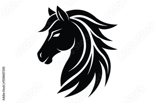 horse, head, vector, silhouette, animal, equine, profile, face, elegant, minimal, black, art, icon, design, shape, vignetting, outline, strong, bold, side, graphic, drawing, clean, smooth, sharp, flat, style, image, form, modern, artwork, creative, creature, detailed, abstract, contour, beauty, majestic, motion, wildness