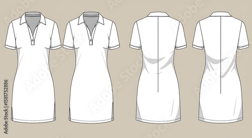 dress, shirt, short sleeve, polo, collar, white, fashion, apparel, clothing, garment, textile, design, template, illustration, vignetting, outfit, summer, casual attire, style, woman, cotton, short, tunic, sleeveless, front, back