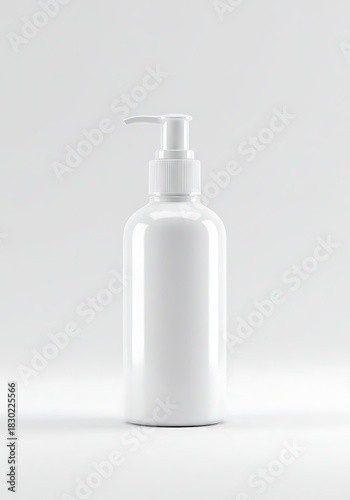 bottle, pump, dispenser, container, plastic, white, clean, empty, cardboard box, product, design, cosmetic, lotion, soap, liquid, hygiene, care, smooth, cylindrical, glossy, elegant, minimalist, simple, modern, blank, template, surface, background, studio, isolated, object, shape, volume