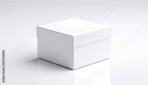 Clean white cardboard box with a lid resting on pristine white background for product packaging or storage.