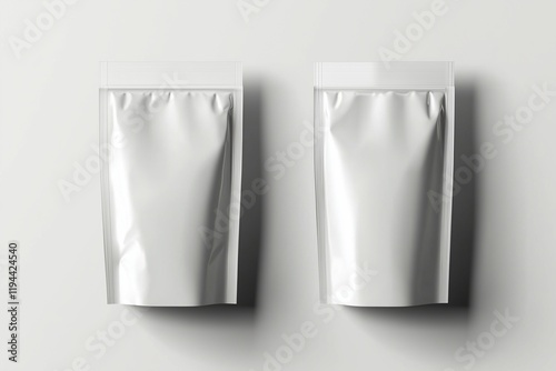Clean white foil pouch mockup, elegant front-back design.