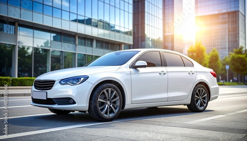 Clean White Sedan Mockup on Urban Street for Automotive Advertising