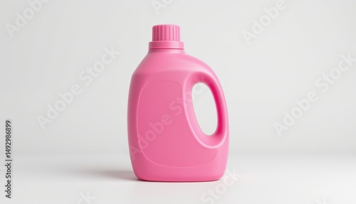 Cleaning supplies action pink laundry detergent bottle studio setting product photography minimalist environment side view