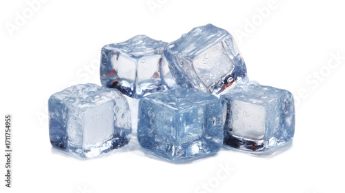 Clear Blue Ice Cubes on White Background for Cold Drinks