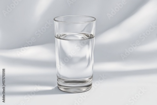 Clear Drinking Water in Transparent Glass on White Fabric Background Natural Refreshing Hydration Concept