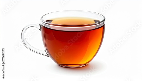 Clear glass cup of black tea isolated on a white background.