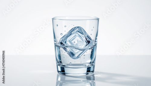 Clear Glass with Ice Cube and Bubbles Minimalist Background