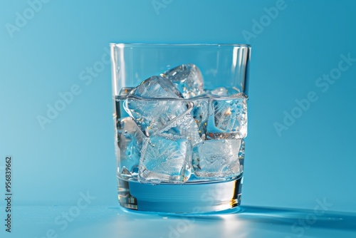 Clear glass with ice cubes filled with cool water. A refreshing drink for hot days. Perfect for summer parties or relaxing moments. Refresh your spirit. Generative AI