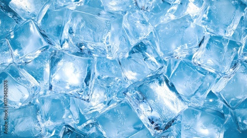 Clear Ice Cubes on Blue Background for Cooling Effect