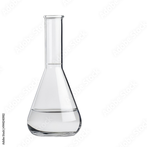 Clear laboratory flask containing liquid, perfect for science, chemistry, and research-themed projects isolate on transparency background