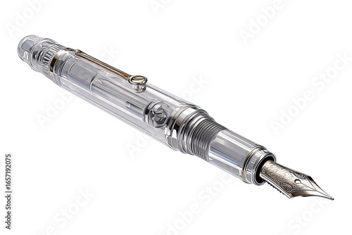 pen, clear, metallic, silver, gold, fountain, luxury, writing, design, glasses, transparent, modern, detail, expensive, high, quality, crafted, elegant, beautiful, smooth, precise, ink, nib, cap, barrel, clip, art, functional, object, instrument, detail, accessory, premium, calligraphy, gift