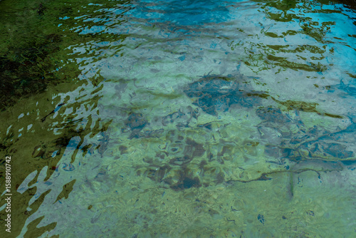Clear rippling lake surface with natural underwater textures for nature, purity and environment concepts