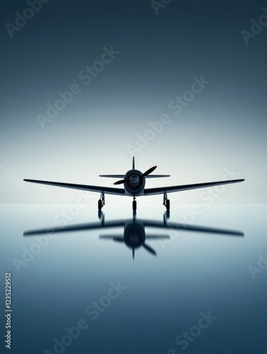 aeroplane, silhouette, clean, line, design, minimalist, dramatic, lighting, aviation, art, creativity, flying, travel, aircraft, blue, background, model, symmetry, isolation, elegance, object, studio, transport, propeller, shape, shadow, colours, visual, modern, sleek, contemporary, effect, contrast, flight, air, perspective, aesthetic, profile, shot, industry, generative, ai