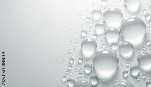 water droplets, clear, light background, transparency, moisture, hydratation, refreshment, bubble, liquid, minimalist, abstract, clean, glossy, refreshing, simple, natural, soft focus, macro