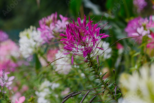 Cleome spinosa flower also called bunga Mamang besar, beautiful in garden. Close up photo