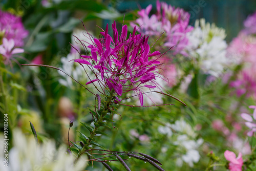Cleome spinosa flower also called bunga Mamang besar, beautiful in garden. Close up photo