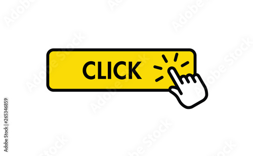 summing, click, buttons, clicking, pointer, buy, here, hand, web, finger, website, vector, offer, linear, promotion, cursor, yellow, rounded
