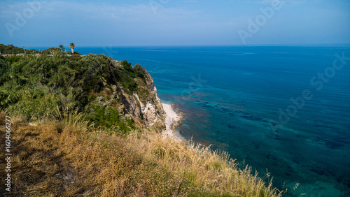italy, calabria, aerial, drone, cliff, vegetation, palm tree, beach, sea, mediterranean, turquoise water, nature, environment, landscape, travel, summer, scenic, coast, ocean, water, sky, rock, island, coastline, bay, shore, view, mountain, rock, cliff, greece, blue, sand, horizon, panorama