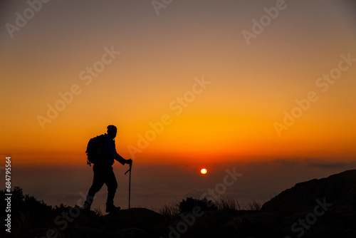 sunset, silhouette, sky, sun, sunrise, nature, people, landscape, mountain, person, sport, adventure
