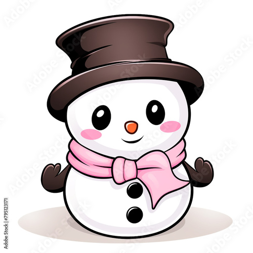 clipart kawaii, cute snowman , soft pastel colour scheme, white background сreated with Generative Ai