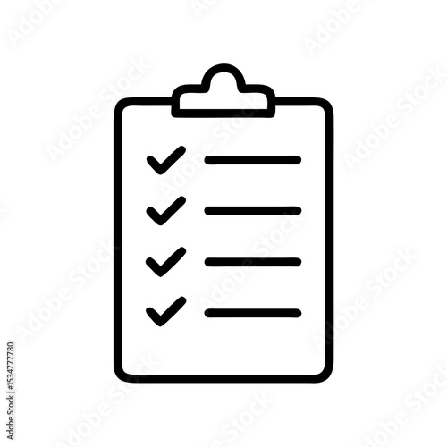 Clipboard Checklist Icon Representing Task Management and To-Do List with Check Marks in Minimalist Outline Style