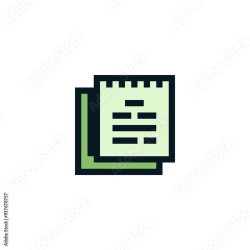 Clipboard icon for notes with sheet of paper pixel art icon. Isolated vector illustration. Element design for mobile app, web, sticker, logo. 8-bit.