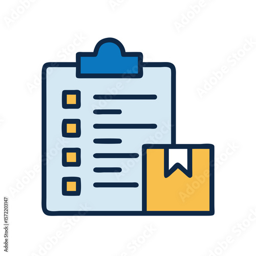 clipboard, checklist, box, package, delivery, icon, shipping, order, logistic, inventory, checkmark, symbol, commerce, e-business, distribution, service, document, form, list, paper, report, information, control, graphic, illustration, outline, line art, quality, planning, organisation, management, process, system, task, verify, validation, approved