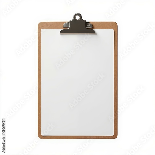 Clipboard with empty paper, white isolate background