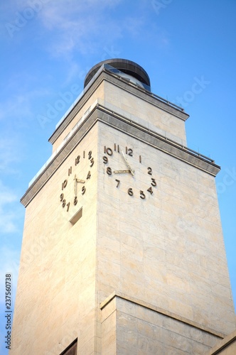 Clock tower in Brescia, Italy. Italian architecture of the year 1932.