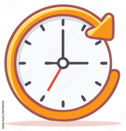 clock, time, arrow, yellow, orange, circle, schedule, deadline, minute, hours, retro, design, illustration, graphic, symbol, icon, concept, indicator, timing, watch, progress, measurement, management, timeline, reminder, return, cycle, round, repeating, modern, abstract, isolated, object, business, digital, hand, clockwise