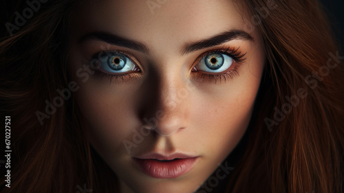 close - up portrait of young girl with beautiful eyes and long dark hair. studio shot.