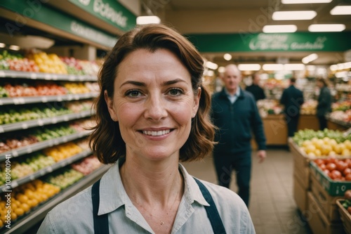 smiling, woman, portrait, irish, grocer, standing, looking, camera, 40s, store, blurred, background, happy, friendly, shopkeeper, entrepreneur, local, market, retail, men at work, employee, formal, casual attire, dressed, fashion, confident, owner, seller, businesswoman, expression, face, character, adult, female, lifestyle, happiness, work, focused, ethnicity, traditional, smile, emotion, positive, cheerful, marketplace, salesperson