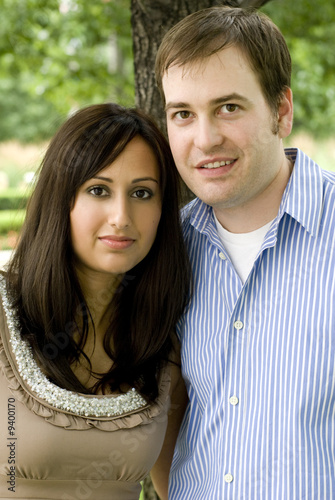 adult, affectionate, bond, brunette, boyfriend, bright, cheerful, couple, cute, dating, embracing, female, girlfriend, happy, heterosexual, love, man, outdoors, people, portrait, romance, togetherness, tree, grass, leaf, 2, woman, young, background, green, tan, blue