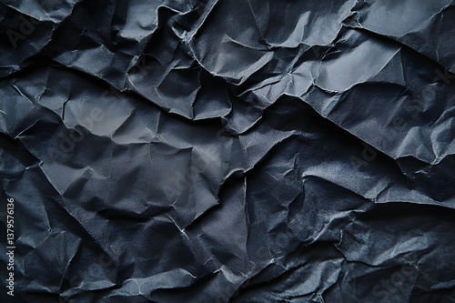 Close up and artistic view of crumpled paper surface with rough texture and complex shadows, macro photography style detail of folds, light effects show vintage and artistic