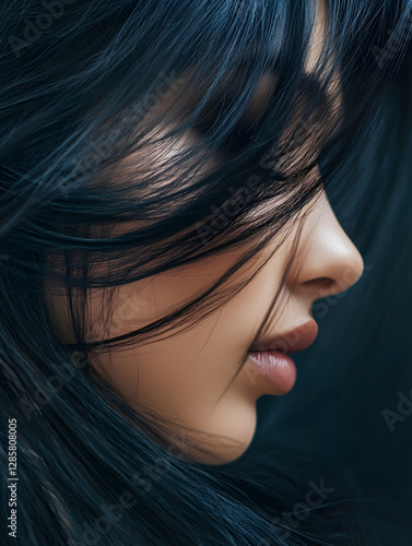 Close Up Artful Portrait of Woman with Wind Blown Hair and Soft Focus Lighting : Generative AI