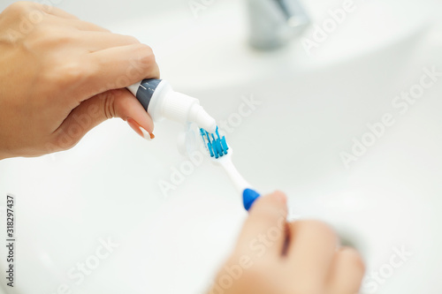 home, teeth, hand, porcelain, stainless, steel, toothbrush, inside, brushing, house, horizontal, running, water, toothpaste, modern, drinking, female, decoration, tap, faucet, sink, white, dental, hygiene, bathroom, care, paste, routine, health, clean, lifestyle, healthy, oral, fluoride, finger, freshness, tube, closeup, young, sanitation, fresh, medicals, brush, morning, hygienic, plastic