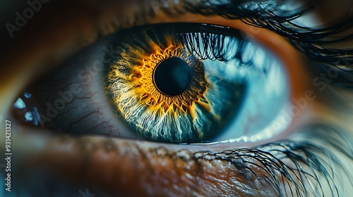 Close Up Macro Photography of Human Eye with Blue Iris and Golden Pattern