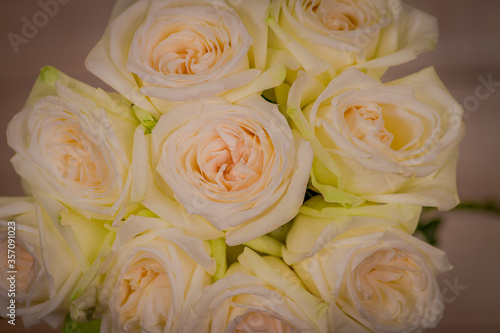 Close up macro shot of a bouquet of White Ohara roses variety, studio shot, white flowers