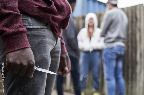 teenage, teenage, teenage, knife, weapon, gang, crime, threat, threatening, violent, violence, problem, social issue, stabbing, urban, city, group, unemployed, boy, girl, man, man, male, woman, woman, female, four people, people, person, multi-ethnic, diversity, multicultural, multiracial, caucasian, african american, asian, outdoors, horizontal, closeup, detail, criminal, robbery, thieving, mugging