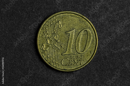 Close up of 10 euro cents (Greek) coin on black background - business concept