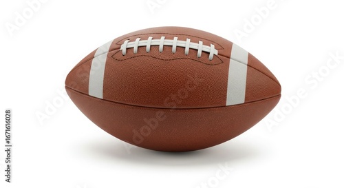 Close up of a brown american football on a white background