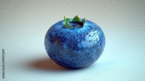 Close up of a fresh blueberry with water droplets and strong shadows isolated on white background showcasing its vibrant texture and color