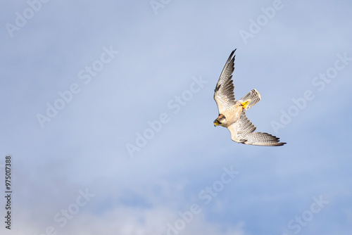 Close up of a Lanner Falcon in the sky in a stoop dive