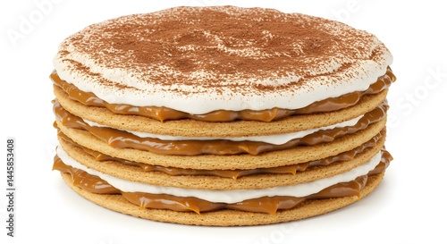 cake, layered, dessert, pastry, sweet, food, baking, delicious, cream, filling, cocoa, powder, white background, closeup, stack, baked, treat, confectionery, epicure, culinary, homemade, tasty, deliciously, brown, white, round, isolated, single, portion, sweetness, sugar, caramel, layer, bakery, presentation, display, studio shot, still life, no people, closeup, ingredient, receipe, cookery, snack, indulgence, delicacy, dish