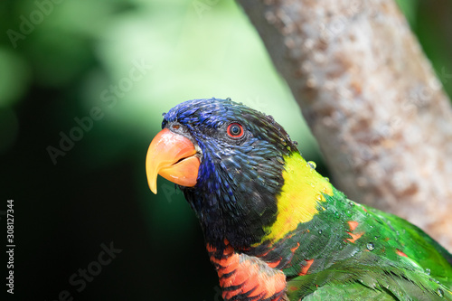 lorikeet, parrot, bird, colourful, blue, yellow, orange, green, closeup, beak, feather