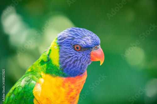 lorikeet, parrot, bird, colourful, blue, yellow, orange, green, closeup, beak, feather