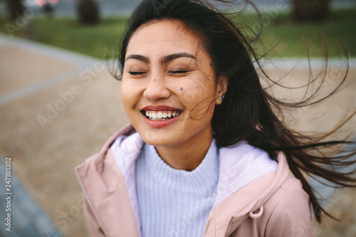 asian, beautiful, beauty, breeze, cardigan, cheerful, closeup, closed, clothes, coat, cold, enjoying, expression, eye, eyes closed, facial, female, filipino, flying, girl, hair, 1, outdoors, person, portrait, season, seasonal, smile, smiling, standing, style, sweater, warm, winter, woman, young