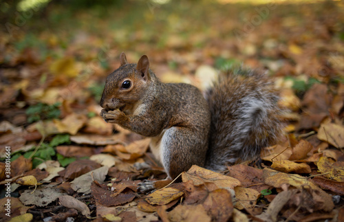 Close up of a squirrel eating nut in the park